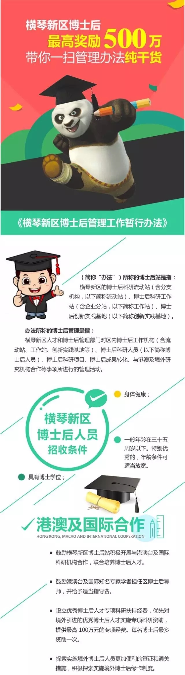 為推動(dòng)博士后事業(yè)蓬勃發(fā)展,橫琴新區(qū)不久前還出臺(tái)了首份《橫琴新區(qū)博士后管理工作暫行辦法》,從建站啟動(dòng)經(jīng)費(fèi)、科研經(jīng)費(fèi)、安家費(fèi)等方面加大了對(duì)博士后工作的扶持力度。