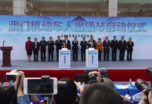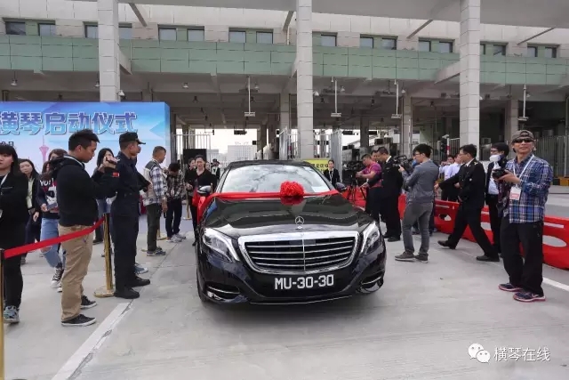 20日上午11時,啟動儀式在橫琴口岸舉行。珠海市委副書記、市長鄭人豪與澳門特別行政區(qū)保安司司長黃少澤一同啟動金鑰匙,隨后9輛澳門單牌車順利進入橫琴。